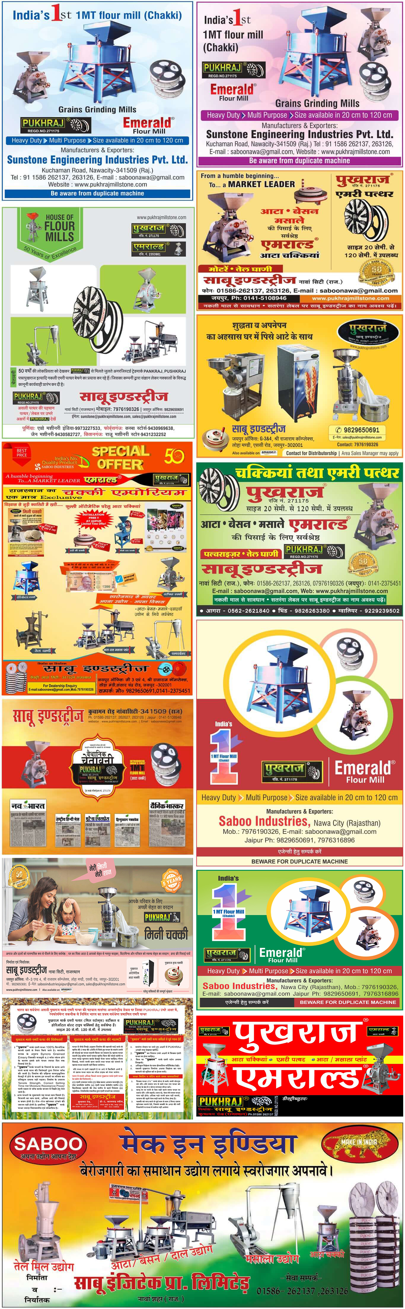 The group manufactures Emery Flour Mill Stones and Flour Mills under brand names PUKHRAJ, EMERALD, SUN, JAYLAXMI.