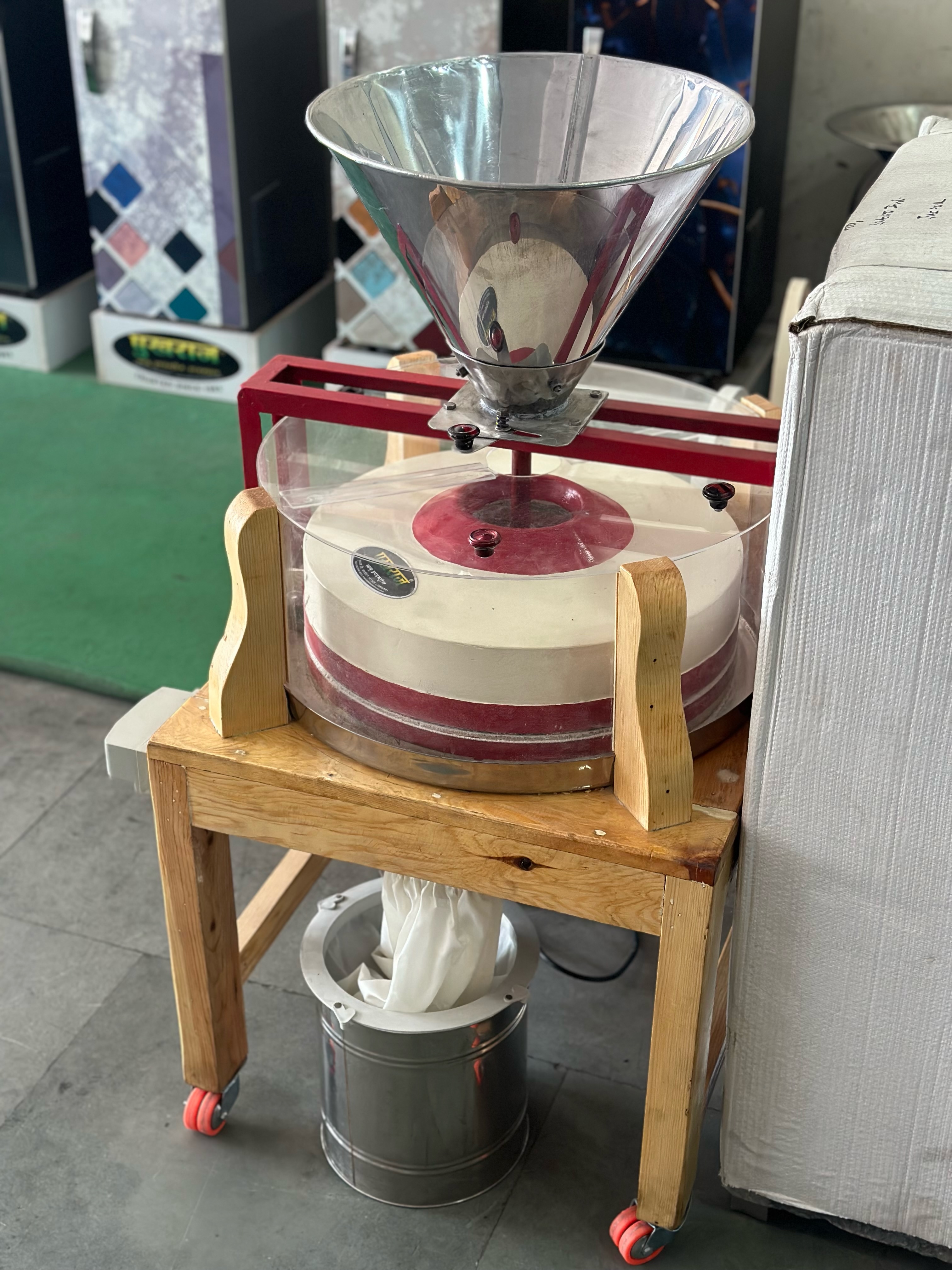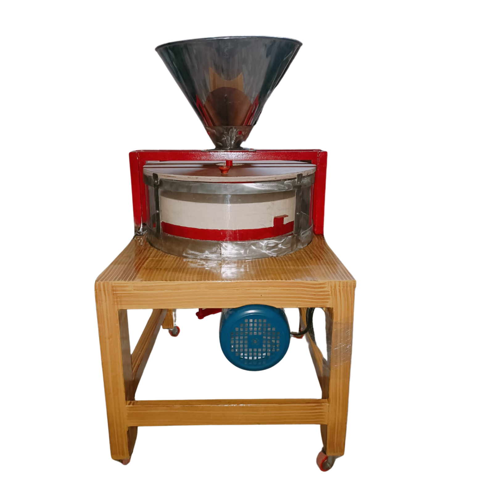 Equipped with strong wheels, you can easily shift the flour mill wherever you need it.